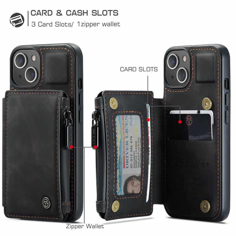 - For Apple iPhone 15/14/13 /13 Pro / 13 Pro Max / 13 Mini CaseMe Back Zipper Wallet Case W/ 3 Card Slots, RFID Blocking, 1 Money Pocket, Credit Card Holder Leather Cover For Apple iPhone 15/14/13 /13 Pro / 13 Pro Max / 13 Mini CaseMe Back Zipper Wallet Case W/ 3 Card Slots, RFID Blocking, 1 Money Pocket, Credit Card Holder Leather Cover