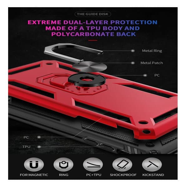 Raised Bezels are extra protection for screen & camera, against scratches and reduce other damages. Therefore, you can easily access all the controls and features. Integrated RING GRIP HOLDER for comfortable & secure single-hand operation.