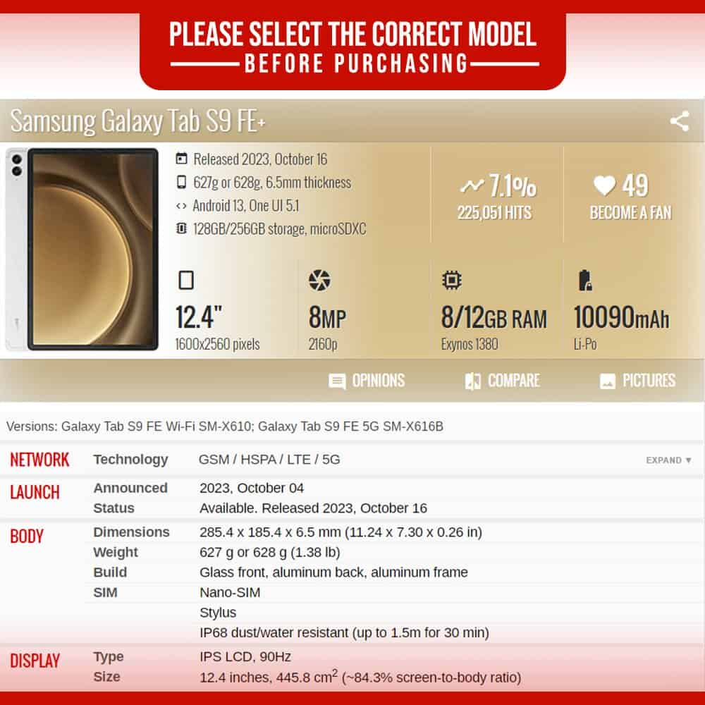- Samsung Galaxy Tab S9 FE (10.9 inch) SM-X510 / SM-X516B, and
