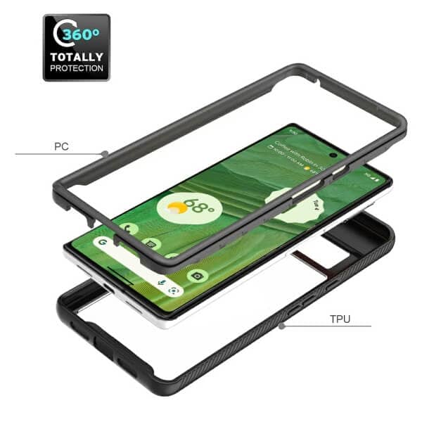 360°full body heavy-duty Google Pixel 7 | 7A | 7 Pro phone case. A high-quality TPU bumper (the frame rugged rubber surrounding the phone case) gives you Military Grade Drop Protection, and it's also slightly higher than the screen and back shell considers that your screen and camera will not wear out even when placed.