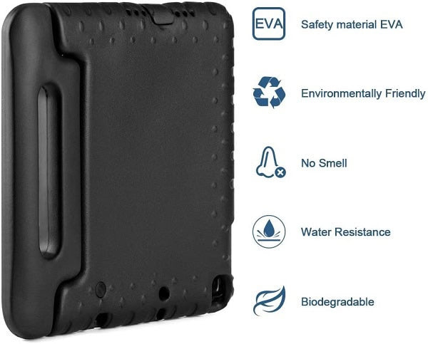 -Made from impact-resistant EVA foam material, efficiently prevents the tablet from accidental drops, bumps, and scratches; Corners feature double-thick silicone for the best shockproof protection