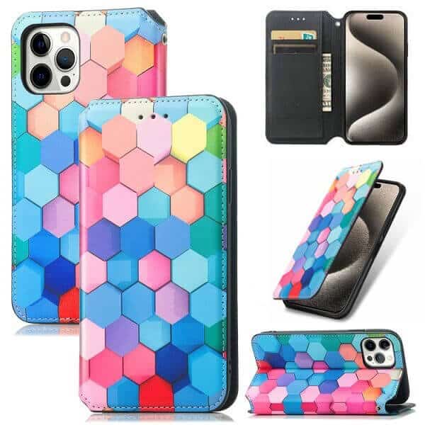 CaseNeo Apple iPhone 14, 14 Plus,14 Pro, 14 Pro Max wallet folio and phone cases are crafted from the high-quality PU leather available in a variety of colors to suit your ever-changing moods. This flip phone case's left side is 2 card slots and 1 pocket, the right side is an undetachable TPU cover. The colorful pattern printing design with delicate stitching makes this folding wallet case unique, graceful, and fashionable for men and women. Precise cutouts give easy access to all ports, buttons, speakers,s, and cameras. Unique wallet case design for this smartphone gives you a chance to surprise your friends in this new design or a great gift to all your loved ones for all festive and non-festive. Best quality CaseNeo Colored Squares Case Cover For Apple iPhone 14, 14 Plus,14 Pro, 14 Pro Max