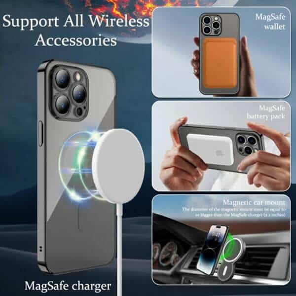 Built-in magnets crystal clear iPhone Case perfectly compatible with MagSafe. Support 15W high-speed charging.