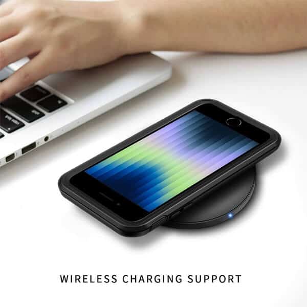 360°full body heavy-duty Apple iPhone SE /7/8 Plus phone case. A high-quality TPU bumper (the frame rugged rubber surrounding the phone case) gives you Military Grade Drop Protection, and it's also slightly higher than the screen and back shell considers that your screen and camera will not wear out even when placed.