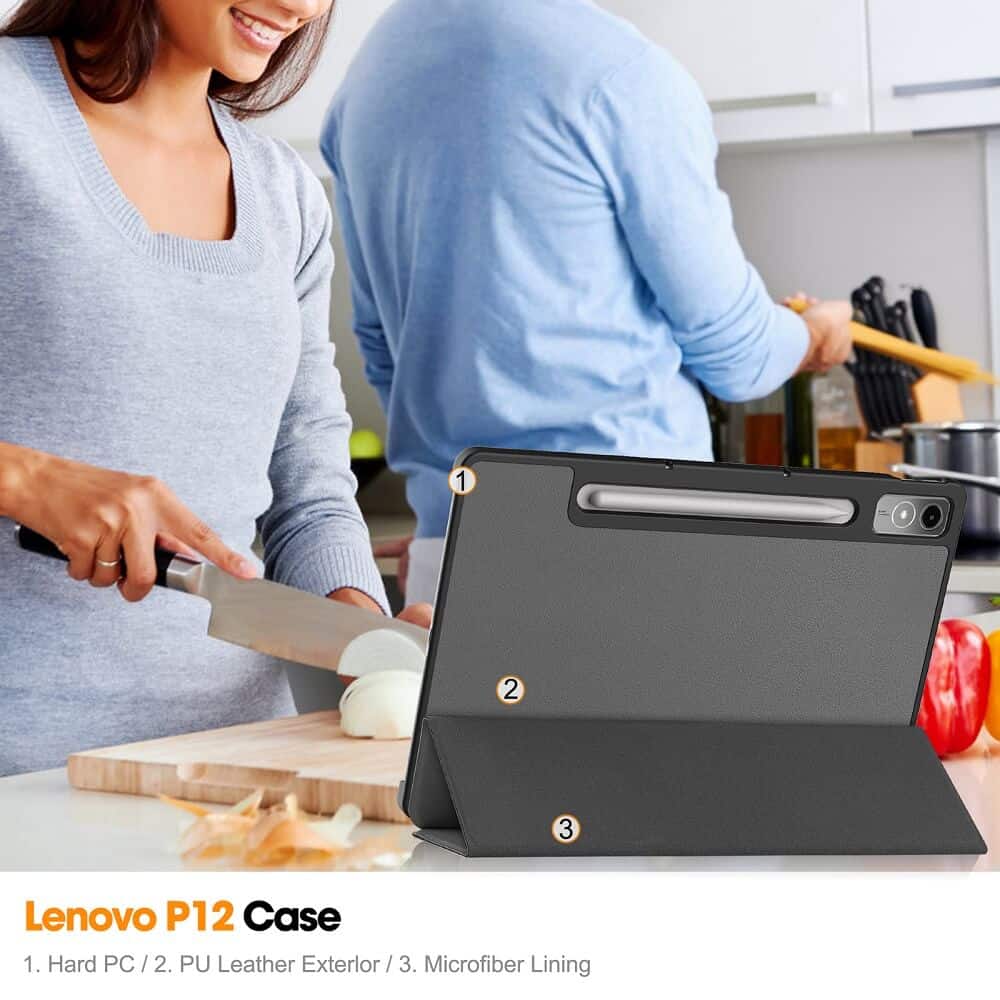 - The protective Lenovo Tab P12 Folio Case Cover is suitable for Lenovo Tab P12 12.7" 2023 Tablet only. The auto wake/sleep function automatically wakes or puts your device to sleep when the lid is opened and closed.