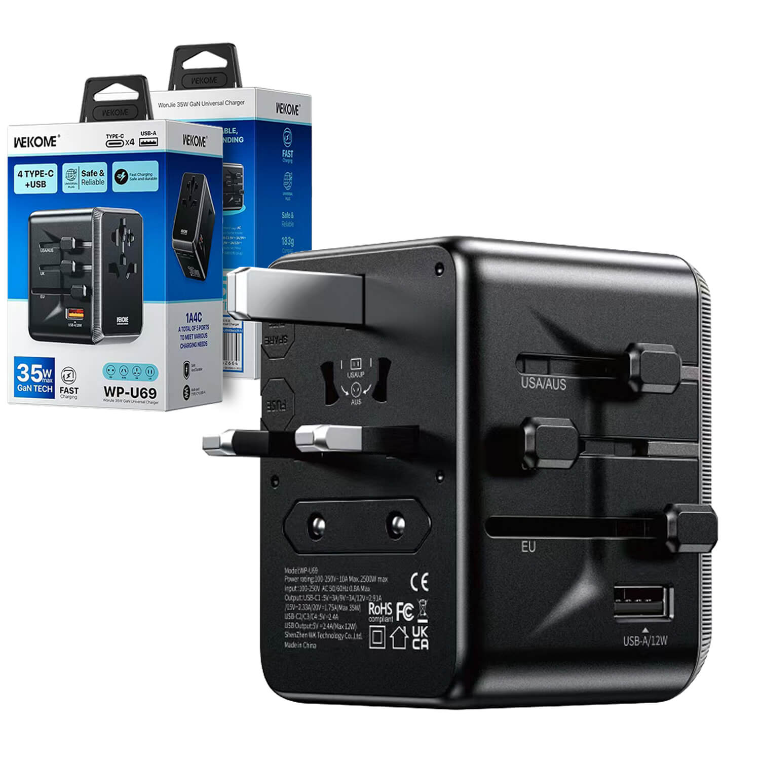 - WEKOME WP-U69 35W GaN EU/UK/US/AUS/JP USB A & 4 USB Type C Universal Conversion Fast Charging Charger Power Travel Adapter (Black) WEKOME WP-U69 35W GaN EU/UK/US/AUS/JP USB A & 4 USB Type C Universal Conversion Fast Charging Charger Power Travel Adapter (Black)