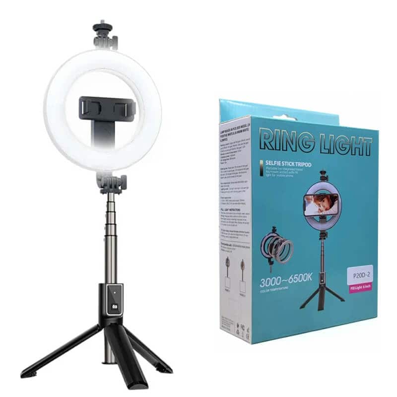 - P20D-2 5" 4in1 Ring Light 360 Degree Rotating Built-in Battery Remote Phone Selfie Live Camera Foldable Tripod Selfie Stick Handheld Extendable P20D-2 5" 4in1 Ring Light 360 Degree Rotating Built-in Battery Remote Phone Selfie Live Camera Foldable Tripod Selfie Stick Handheld Extendable