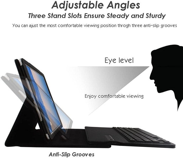 - The removable keyboard is used as part of the stand for the iPad. Move the keyboard more forward or backwards along the cover of the case. You can adjust the angle of the tablet to your preference
