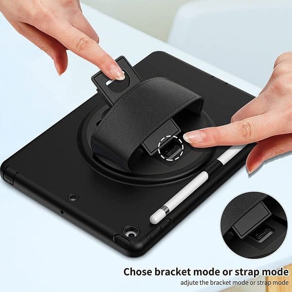 An adjustable hand strap depends on the size of the hand. Hold the Apple iPad 9th /8th /7th Gen 10.2 inch firmly with one hand to prevent it from slipping out of the hand, supporting horizontal and vertical.