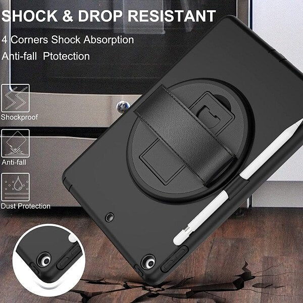 Apple iPad 9th /8th /7th Gen 10.2 inch case built-in bracket and turntable. Pick the perfect angle that you want. For watching videos, conferences, typing, and drawing. Ideal for office workers, students, parents, or children.