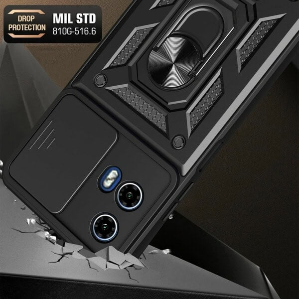 For Motorola Moto G04/G24/G34 Anti Scratch Rugged Magnetic Car Mount Ring Shockproof Heavy Duty Cover (Black)