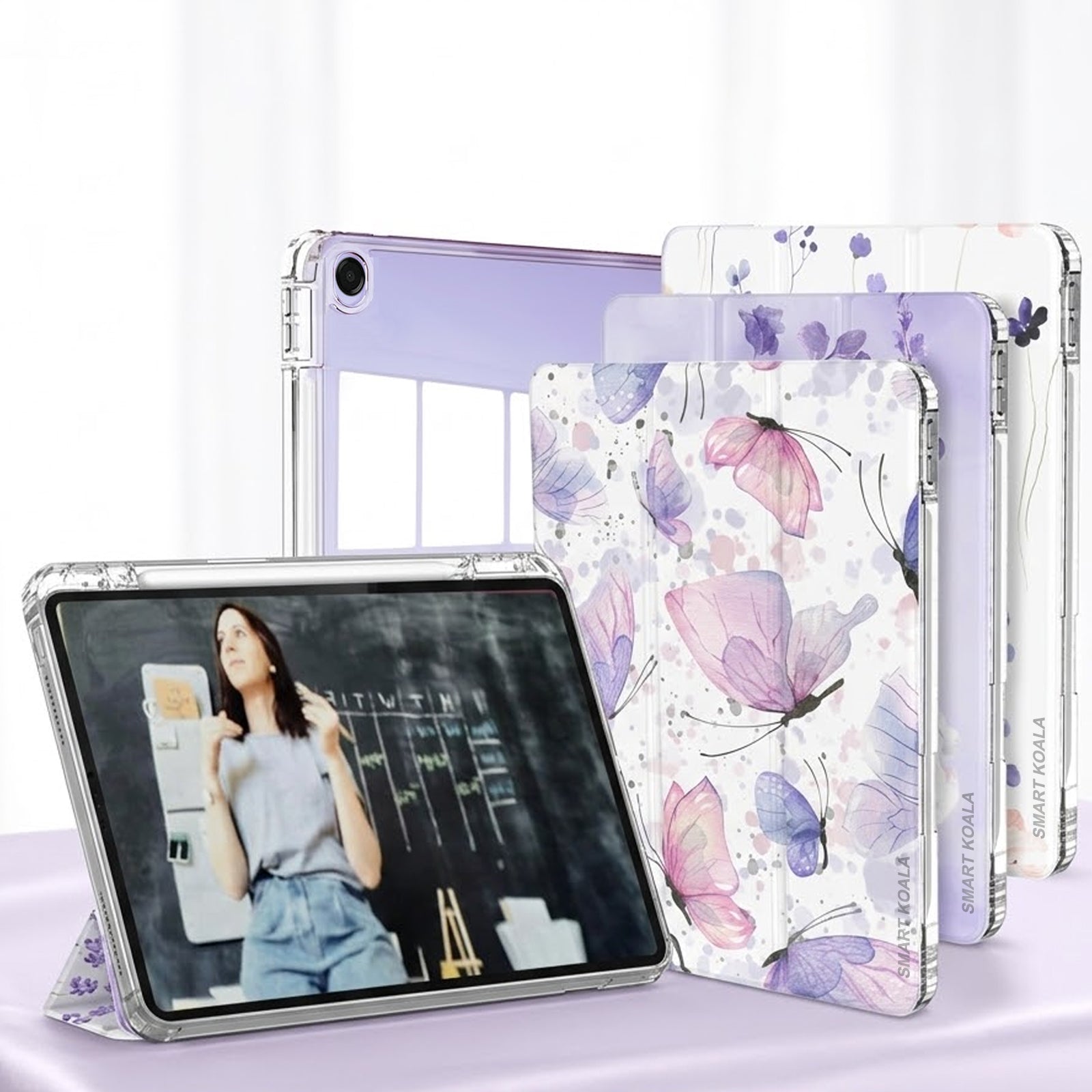 Two viewing angles are available. The front cover can be folded to be a stand that provides comfortable viewing angles when watching videos, texting, gaming, learning, etc.
