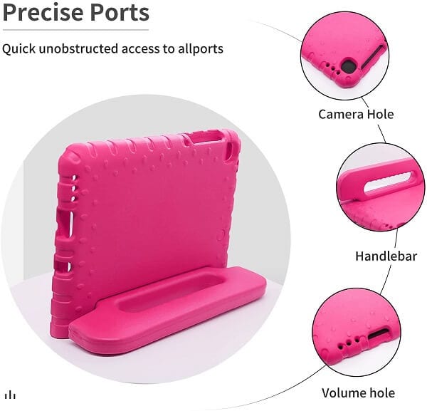 -Made from impact-resistant EVA foam material, efficiently prevents the tablet from accidental drops, bumps, and scratches; Corners feature double-thick silicone for the best shockproof protection